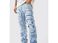 A pair of straight-leg jeans with elastic fabric and stylish patchwork details.