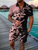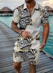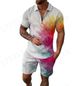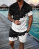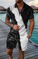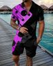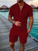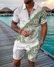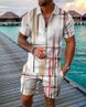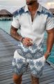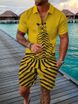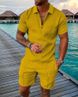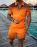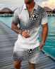 Men's Fashion Casual Suit 3D Printed Zipper Short Sleeve Polo Shirt Shorts 2-Piece Set