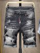 Trendy streetwear cropped pants with elastic holes, patch stickers, hand-painted paint dots, folded hems, jeans for men