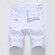 Men's High Street Zipper Elastic Slim Fit Denim Shorts Men's Casual White, Black, And Red Shorts With Holes, Versatile Five Inch Shorts