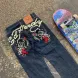 Men's Jeans American Y2K Street Hip Hop Letter Embroidery Straight Leg Trendy Casual High Waist Style