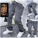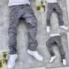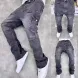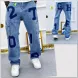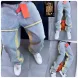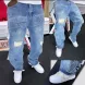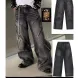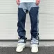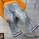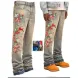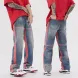 Men's Jeans European Ink Sprayed Flared For Men Contrast Color Looen Fit Streetwear Denim Clothes Open Hem Male's Baggy