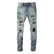 Men's Jeans Light Blue Embroidered Snake Patchwork High Street Stretch Distressed Slim Fit Ripped Men