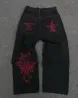 Men's Jeans Y2K Fashion Men Women Haruku Cross Graphic Rhinestone Baggy Trousers Goth Retro Blue Straight Pants
