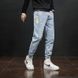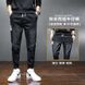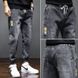 Men's Korean Style Oversized Cargo Jeans | Acetate Stretch Tapered Ankle Pants | Streetwear Workwear (Grey/Black/Light Blue)