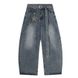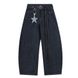 Men's Loose Fit American Street Style Washed Scythe Jeans with Belt and Pentagram Pendant, Wide Leg Pants