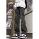 Men's Retro Camouflage Workwear Jeans - Vintage Washed Denim Pants With Patchwork Details, Straight Leg Spring/Autumn Utility Trousers