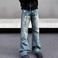 Men's Retro Splatter Paint Jeans – High-Street Drop-Crotch Straight & Flared Pants (S-3XL) | Vintage Washed Cotton, Button Fly