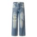 Men's Ripped Jeans Trendy Punk Vintage Washed Frayed Edge Patchwork Design Personality Loose Straight Long Pants