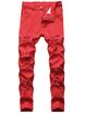 Men's Slim Fit Pants Trendy Street Ripped Red Pants Washed With Youthful Vitality Zipper Pencil Pants