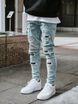 Men's Stacked Jeans Skinny Fit Stretch Patched Side Striped Straight Leg Denim Pants Foam