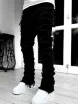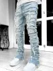 Mens Streetwear Ripped Jeans Fashionable Cool Stretch Pink Stacked Edge Denim Mens Y2K Punk Patch Work Hip-hop Pants