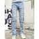 Men's Stretch Patchwork Jeans – Euro-American Slim Fit Denim Pants With Layered Design (Light Blue/Pink/Black/Khaki, Button Fly, Summer Casual)