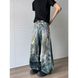 Men's Vintage Hip Hop Chain Print Denim Pants High Street Punk Wide-Leg Jeans For Urban Streetwear