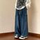 "Men's Vintage Washed Denim Work Pants – Relaxed Wide Leg Fit With Utility Pockets (S-3XL, Light Blue/Black)"