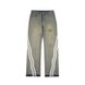 Men's Vintage Washed Distressed Denim Jeans With Wave Double Bootcut Design - Classic Straight Leg Stretch-Free Jeans For Casual Wear