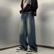 Men's Washed Straight-Leg Jeans – Vintage Loose Fit Denim Pants, High Street Baggy Trousers With Button Fly (Black/Blue)