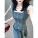 New Chinese style embroidered denim dress for women in summer, with a waist cinching and slimming effect, exuding a sense of luxury and fashionable long skirt