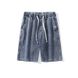 New Denim Five-point Pants Men's Summer Thin Elastic Waist Sports Jeans Men's Trendy Brand Badge Straight Five-point Pants
