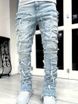 New Men's Street Fashion Ins Elastic Patch Denim Straight Leg Pants