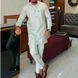 New Men's Tenos Wedding 2-Piece Suit Waist Pants Shirt Solid Color Panel Long Sleeve Party African Ethnic Style Clothing