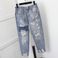 New Plus Size Women's Clothing 200 Pounds Fat MM Nine Point Hole Denim Harem Pants Loose Beggar Nine Point Pants