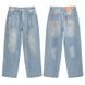 New Trendy Brand AC Gradient silver Coated Jeans Washed Vintage Distressed American Style Unisex Straight Pants