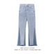 2023 niche washed and distressed patchwork slimming micro flared jeans, men's trendy American street casual pants