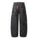 Nordmann American Style Vibe Retro Leopard Print Patchwork Scimitar Jeans For Men, Cool High Street Large Pocket Loose Wide-Leg