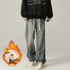 Nordmann Winter Fleece-Lined Thickened Side Ribbed Full Elastic Waist Drawstring Loose Straight Versatile Men's Trendy Jeans
