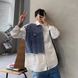 Internet Celebrity Shirt for Men, Cool and Handsome Ins Style, Spring and Autumn Jacket, Korean Version, Trendy and Stylish, Patchwork Denim Shirt with Design Sense, Long Sleeve