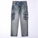 Nostalgic Blue Multi Pocket Workwear Military Outdoor Jeans Men's Loose Straight Tube Retro Hip-hop Motorcycle Jeans 50-135KG Crowd