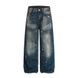 Paint Splatter Vintage White Jeans For Men Loose Wide Leg Frayed Hem Distressed Washed Straight Long Pants Trendy Punk