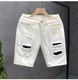 Patch Ripped Denim Trendy Brand Loose Straight Five Quarter Pants Men's Summer Thin White Casual Shorts