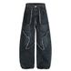 Patchwork Design Scimitar Denim Pants Men Loose Washed Frayed Edge Five-Pointed Star Patch Wide-Leg Pants Street Fashion