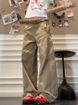 Plus Size American Style Khaki Cargo Jeans for Women High Street Design Loose Wide Leg Draped Straight Long Pants