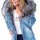 Plus Size Denim Jacket With Faux Fur Hood – Oversized Streetwear Coat For Women, S-5XL (Black/Grey/Blue/Light Blue)
