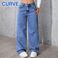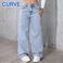 Plus Size Women's High-Waisted Straight-Leg Jeans – Sweet & Edgy Stretch Denim Pants (Casual & Office-Ready, Trendy Patchwork Details)