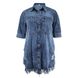 Plus-size Women's New Denim Ripped Fringed Short-sleeved Collar Dress