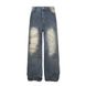 Post-apocalyptic Style Color-Block Spray Paint Jeans Men's Trendy Punk Washed Tie-Dye Distressed Dirty Wide-Leg Straight
