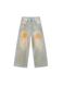 These jeans aren't just clothing—they're archaeological finds from a future that never was. The hand-painted splatters tell stories of imaginary chemical rains, while the strategic fading mimics decades of post-cataclysmic sun exposure.