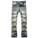 Punk Blue Slim Elastic Orange Patch Youth Straight Flared Men's Jeans