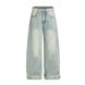 Punk Faded Washed Curled Hem Oversized Jeans For Men Trendy Distressed Frayed Cuffed Loose Wide-Leg Pants