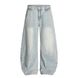 Punk Heavy Washed Denim Scimitar Pants Men's Street Fashion Loose Wide-Leg Long Pants Curved Casual Versatile Dad Pants