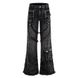 Punk Heavy Washed Vintage Denim Flared Vibe Style Niche Deconstructed Patchwork Frayed Design Long Pants For Men