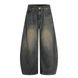 Punk Vintage Washed Denim Scimitar Pants Men's Long Pants Street Style Mud-Dyed Ripped Loose Wide-Leg Sickle Pants