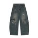 Punk Vintage Washed Scimitar Jeans for Men, Deconstructed Patchwork Multi-Pocket Design, Workwear Style Long Pants, Trendy
