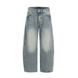 Punk Washed White Denim Scimitar Pants Men's Loose Casual Distressed Design Workwear Wide-Leg Trousers