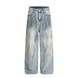 Punk Wasteland Spray Paint Vintage Dirty Jeans for Men, Niche Loose Wide-Leg Washed Frayed Straight Long Pants Trendy