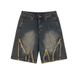 Pure Ripped Denim Men's Trendy American High Street Five-Point Loose Straight Retro Washed Frayed Shorts